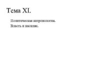 Тема XI Политическая антропология Власть и насилие