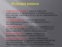 Функции рынков Классификации рынков
