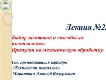 Лекция 2 Выбор заготовок и способы их
