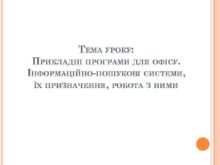 ТЕМА УРОКУ ПРИКЛАДНІ ПРОГРАМИ ДЛЯ ОФІСУ ІНФОРМАЦІЙНО-ПОШУКОВІ СИСТЕМИ