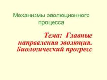 Механизмы эволюционного процесса Тема Главные направления эволюции Биологический