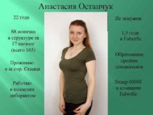 Анастасия Остапчук 22 года 88 новичка в структуре