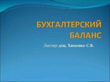 БУХГАЛТЕРСКИЙ БАЛАНС Лектор доц Хименко С В