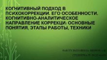 КОГНИТИВНЫЙ ПОДХОД В ПСИХОКОРРЕКЦИИ ЕГО ОСОБЕННОСТИ КОГНИТИВНО-АНАЛИТИЧЕСКОЕ НАПРАВЛЕНИЕ