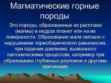 Магматические горные породы Это породы образованные из расплава