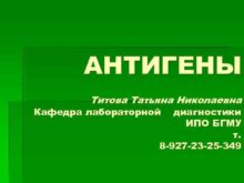 АНТИГЕНЫ Титова Татьяна Николаевна Кафедра лабораторной диагностики ИПО