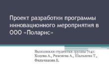 Проект разработки программы инновационного мероприятия в ООО Поларис