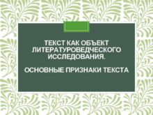 ТЕКСТ КАК ОБЪЕКТ ЛИТЕРАТУРОВЕДЧЕСКОГО ИССЛЕДОВАНИЯ ОСНОВНЫЕ ПРИЗНАКИ ТЕКСТА
