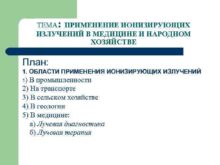 ТЕМА ПРИМЕНЕНИЕ ИОНИЗИРУЮЩИХ ИЗЛУЧЕНИЙ В МЕДИЦИНЕ И НАРОДНОМ