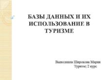 БАЗЫ ДАННЫХ И ИХ ИСПОЛЬЗОВАНИЕ В ТУРИЗМЕ Выполнила