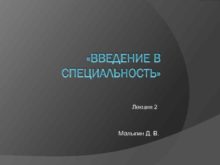 ВВЕДЕНИЕ В СПЕЦИАЛЬНОСТЬ Лекция 2 Малыгин Д