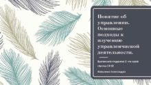 Понятие об управлении Основные подходы к изучению управленчиской