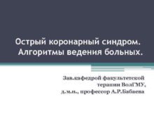 Острый коронарный синдром Алгоритмы ведения больных Зав кафедрой