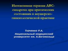 Интенсивная терапия ДВСсиндрома при критических состояниях в акушерскогинекологической