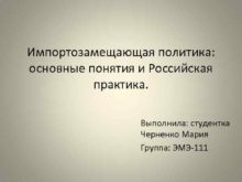 Импортозамещающая политика основные понятия и Российская практика Выполнила