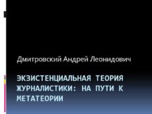 Дмитровский Андрей Леонидович ЭКЗИСТЕНЦИАЛЬНАЯ ТЕОРИЯ ЖУРНАЛИСТИКИ НА ПУТИ