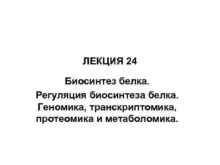 ЛЕКЦИЯ 24 Биосинтез белка Регуляция биосинтеза белка Геномика