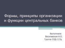 Формы принципы организации и функции центральных банков Выполнила