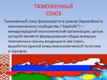 ТАМОЖЕННЫЙ СОЮЗ Таможенный союз формируется в рамках Евразийского