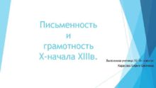 Письменность и грамотность Х-начала XIIIв Выполнила ученица 10