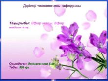 Дәрілер технологиясы кафедрасы Тақырыбы Эфир майын алу Орындаған