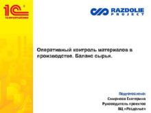 Оперативный контроль материалов в производстве Баланс сырья Подготовлено