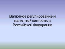 Валютное регулирование и валютный контроль в Российской Федерации