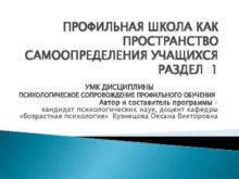 ПРОФИЛЬНАЯ ШКОЛА КАК ПРОСТРАНСТВО САМООПРЕДЕЛЕНИЯ УЧАЩИХСЯ РАЗДЕЛ 1