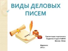 ВИДЫ ДЕЛОВЫХ ПИСЕМ Презентацию подготовила Студентка 3 курса