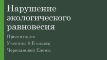 Нарушение экологического равновесия Презентация Ученицы 8 Б класса