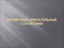 ПЕРВИЧНЫЕ ОПИСАТЕЛЬНЫЕ СТАТИСТИКИ К первичным описательным статистикам