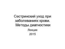Сестринский уход при заболеваниях крови Методы диагностики Лекция