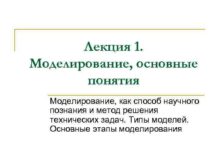 Лекция 1 Моделирование основные понятия Моделирование как способ