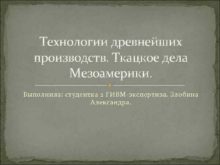 Технологии древнейших производств Ткацкое дела Мезоамерики Выполнила студентка