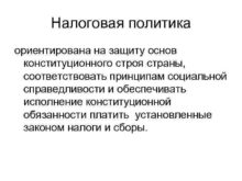 Налоговая политика ориентирована на защиту основ конституционного строя
