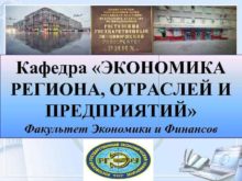 Кафедра ЭКОНОМИКА РЕГИОНА ОТРАСЛЕЙ И ПРЕДПРИЯТИЙ Факультет Экономики