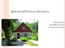 ДОМ-МУЗЕЙ ГЕРМАНА БРАХЕРТА Выполнила Малофеева Анна Студентка I