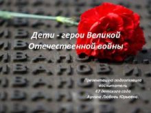Дети герои Великой Отечественной войны Презентацию подготовила воспитатель