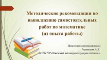 Методические рекомендации по выполнению самостоятельных работ по математике
