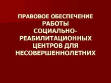 ПРАВОВОЕ ОБЕСПЕЧЕНИЕ РАБОТЫ СОЦИАЛЬНОРЕАБИЛИТАЦИОННЫХ ЦЕНТРОВ ДЛЯ НЕСОВЕРШЕННОЛЕТНИХ