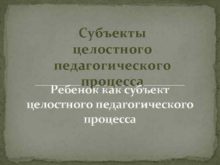 Субъекты целостного педагогического процесса Ребенок как субъект целостного