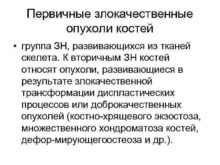 Первичные злокачественные опухоли костей группа ЗН развивающихся