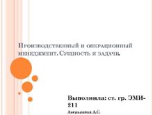 ПРОИЗВОДСТВЕННЫЙ И ОПЕРАЦИОННЫЙ МЕНЕДЖМЕНТ СУЩНОСТЬ И ЗАДАЧИ Выполнила