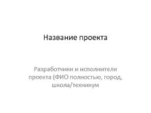 Название проекта Разработчики и исполнители проекта ФИО полностью