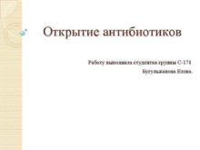 Открытие антибиотиков Работу выполнила студентка группы С-171 Бугульжанова