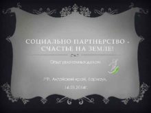 СОЦИАЛЬНО ПАРТНЕРСТВО СЧАСТЬЕ НА ЗЕМЛЕ Опыт увлеченных делом