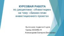 КУРСОВАЯ РАБОТА по дисциплине Инвестиции на тему Бизнес-план