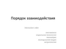 Порядок взаимодействия Interaction order лингвистика социальная психология психиатрия