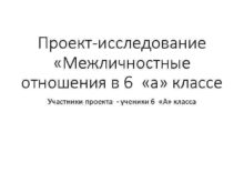 Проект-исследование Межличностные отношения в 6 а классе Участники