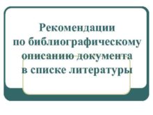 Рекомендации по библиографическому описанию документа в списке литературы